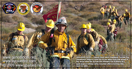 MORNING HIKE Deputy Chief Villalpando leads the SYCFD fire academy trainees down off a steep Dehesa Valley mountain DOWNLOAD HIGH RESOLUTION BIA POSTER.