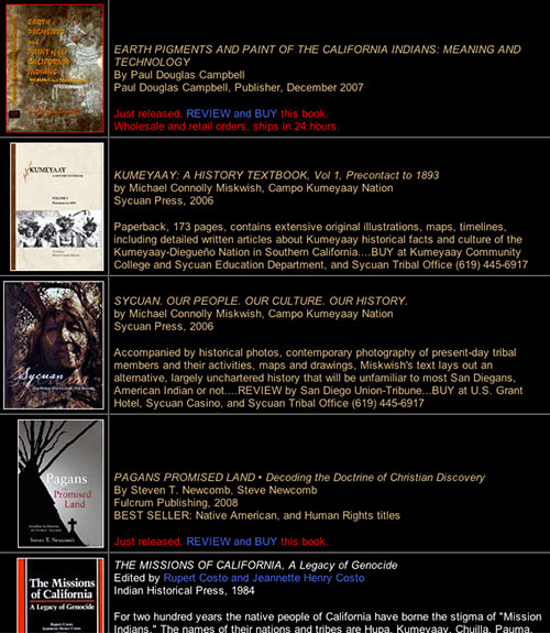 CALIFORNIA INDIAN BOOKS 50-plus books on our list of important books about the Kumeyaay and California tribes of Southern California and northern Mexico.