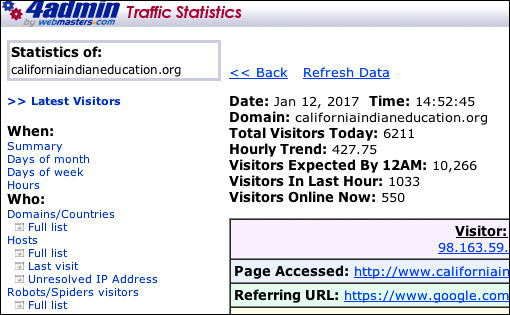 This traffic rivaled my KUMEYAAY.INFO site for daily visitors, page views, and amount of original content presented.